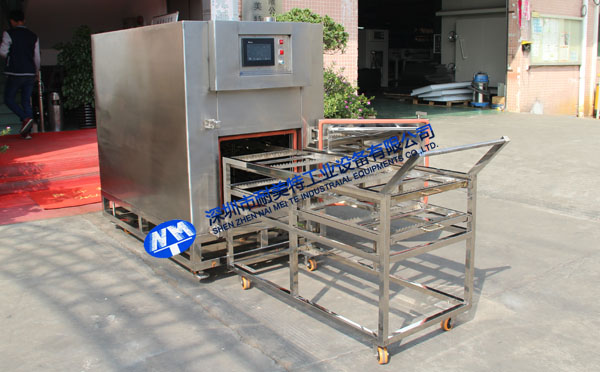 2.內膽部分:內膽材質采用1.5㎜厚SUS304鏡面不銹鋼板制做,不生銹,使爐內清潔、無塵。內膽尺寸:寬0.53米,高0.4米,深1.45米,內膽四周鋪100mm厚高溫硅酸隔熱巖棉,門邊四周增加耐高溫密封硅膠條,使爐外溫度不燙手。進氣口增加中效過濾網,使爐內空氣更加潔凈無塵。